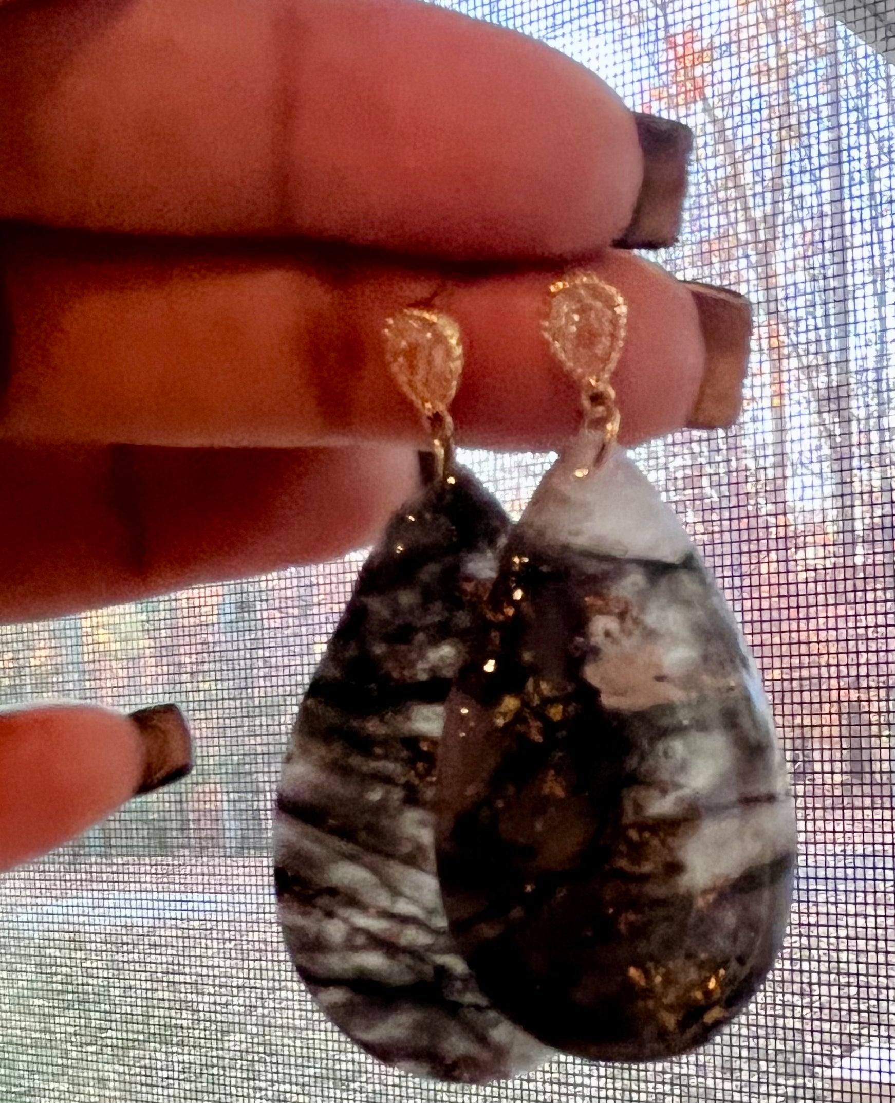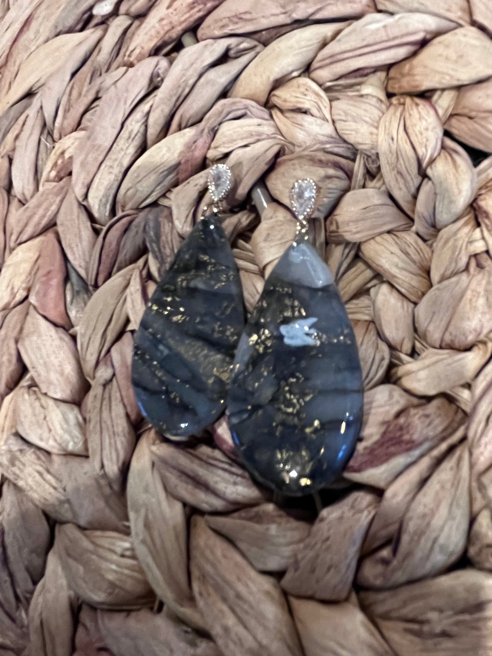 "Introducing GESA, the elegant and lightweight spear pendant. Made of translucent clay in a teardrop shape, these earrings exudes strength and femininity. At one and a half inches, it's perfect for the dainty girly. Enhance any outfit with GESA.